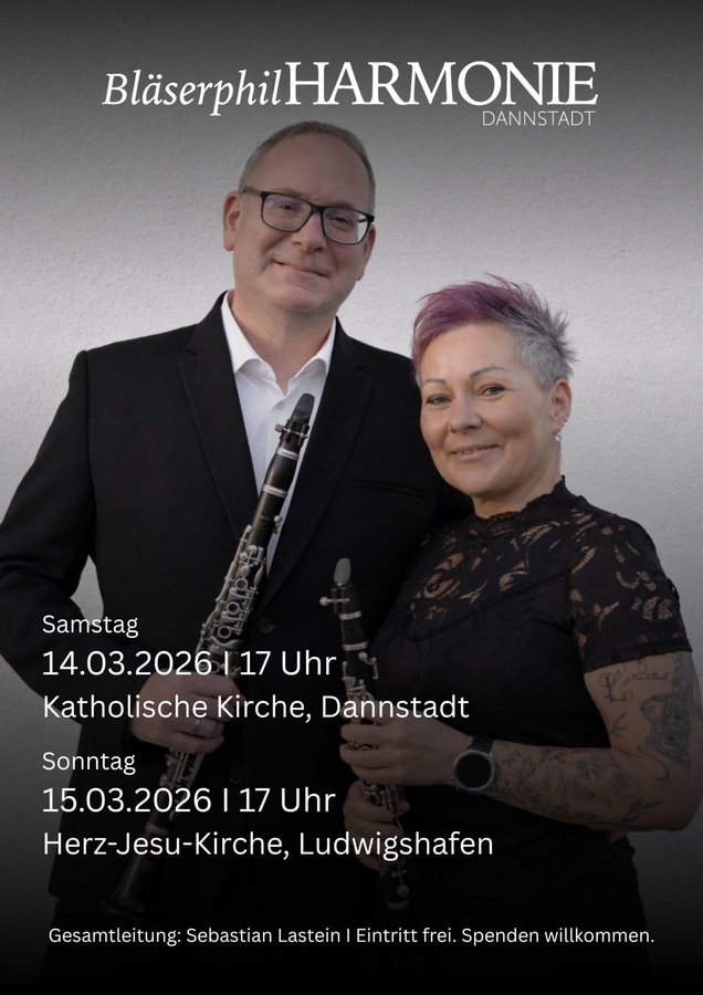 Am Sonntag, 15.03.2026, um 17 Uhr tritt die BläserphilHARMONIE zum ersten Mal in der Kirche Herz Jesu auf. Es erwartet Sie ein vielseitiges Konzertprogramm mit bekannten Melodien aus Romantik und Film sowie anspruchsvoller sinfonischer Blasmusik. Freuen Sie sich unter anderem auf das Main Theme aus Schindlers Liste, „Elegy & Scherzo“ für sinfonisches Blasorchester und Cello sowie auf das sinfonische Stück „Wonders of Nature“ von Bert Appermont.