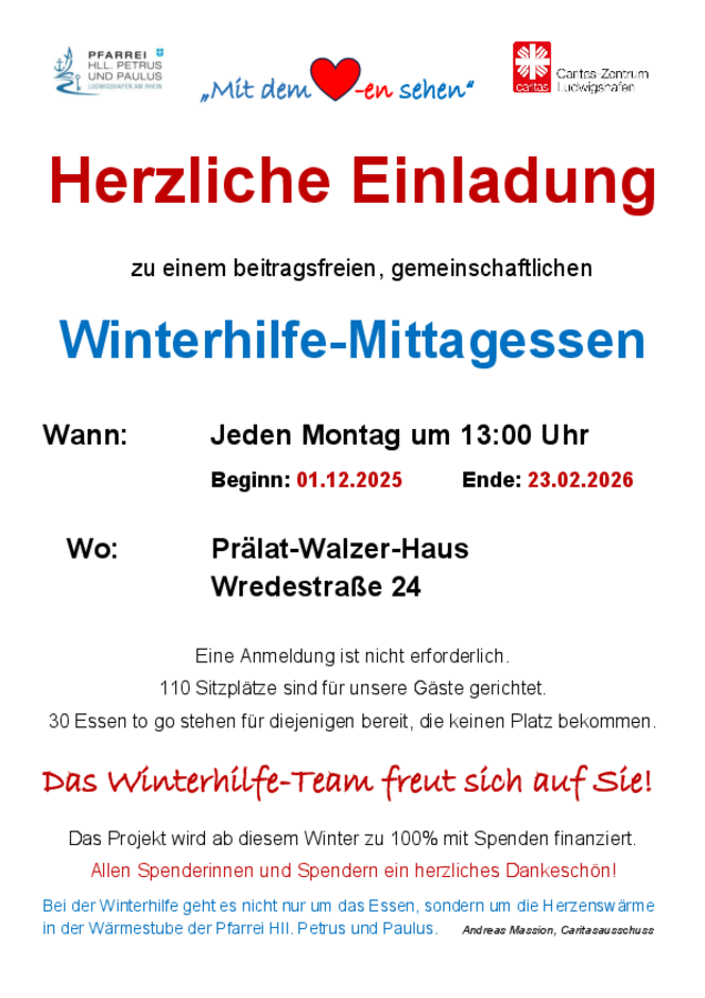 Gemeinsames Projekt der Pfarrei Hll. Petrus und Paulus und dem Caritas-Zentrum Ludwigshafen