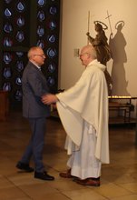 Pater Ralf Klein SJ bedankte sich für die gute und konstruktive Zusammenarbeit und betonte, dass Joachim Sommer somit nicht nur ein Segen für die Gemeinde St. Sebastian, sondern für die gesamte Pfarrei ist. Er endete seine Laudatio mit einem herzlichen Vergelt's Gott für alles, was bereits getan wurde und weiterhin getan wird.