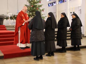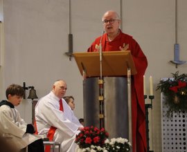 Am Sonntag, 25. Januar 2026, feierte die Gemeinde St. Sebastian ihr Patrozinium. Der Festgottesdienst wurde vom Kirchenchor St. Sebastian und der Sopranistin Corinna Langenbacher mitgestaltet. Aufgeführt wurde die Messe in F („Sebastiansmesse“), die Chorleiter Christoph Angeli vor einigen Jahren selbst komponiert hatte. P. Ralf Klein SJ hob in seiner Predigt vor allem die Standhaftigkeit Sebastians hervor und übertrug diese Eigenschaft auf uns heutige Christen. Innerhalb des Gottesdienstes übergab P. Klein auch die Beauftragungsschreiben für den Kommunionhelferdienst an vier indische Ordensschwestern, die in der St. Josefspflege, in der sie hauptamtlich arbeiten und in der Kirche diesen Dienst übernehmen und dankte ihnen für ihren Einsatz.